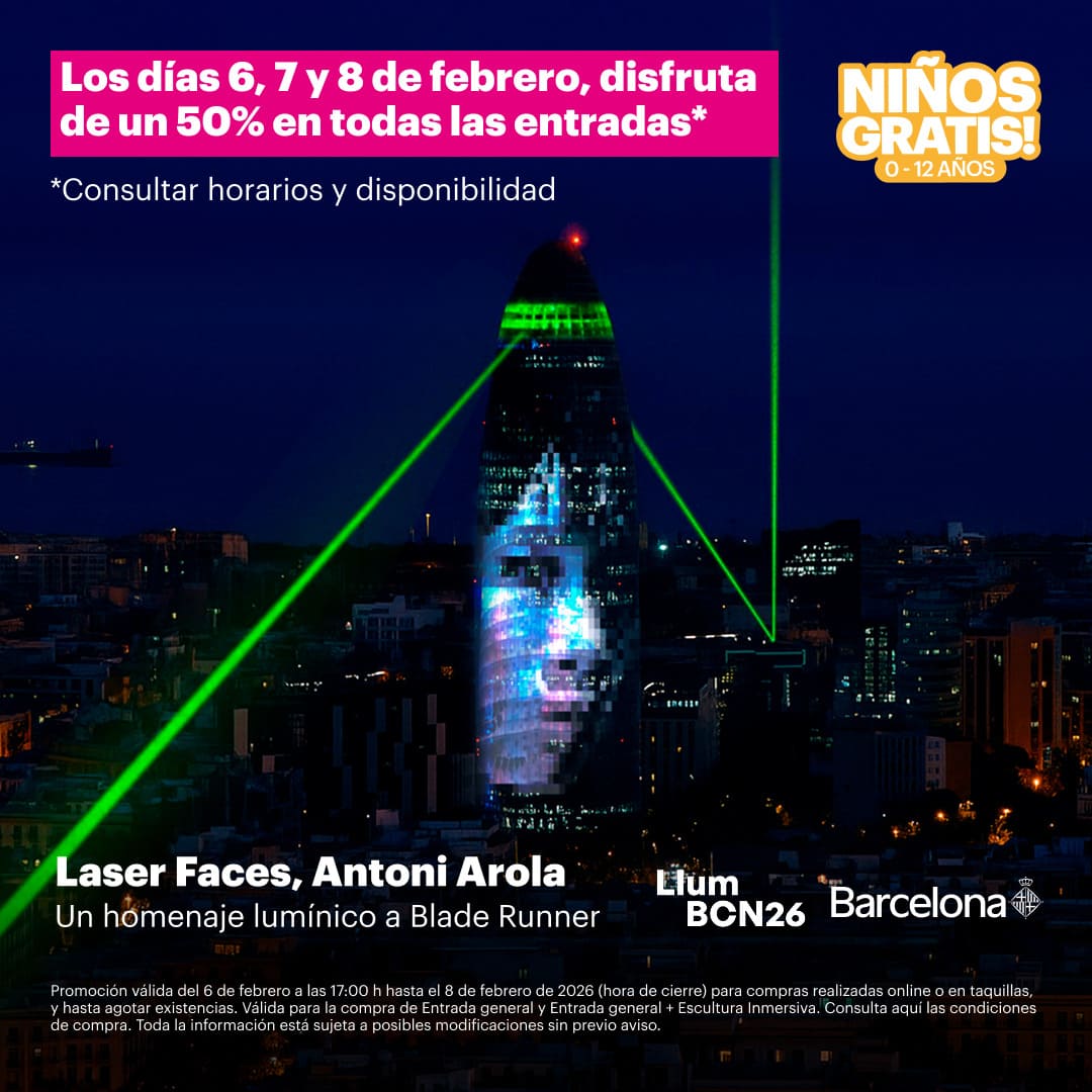 Con motivo del Festival Llum BCN 2026, del 6 al 8 de febrero de 2026, el Mirador Torre Glòries ofrecerá una promoción especial del 50%…